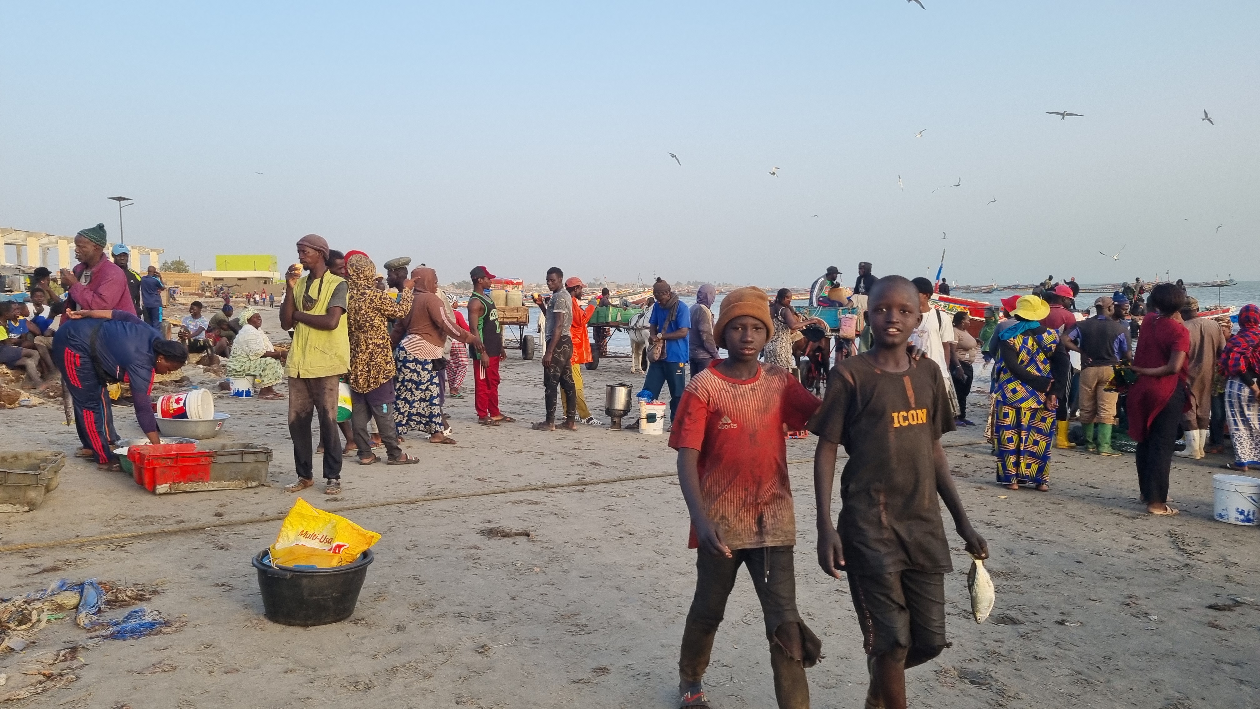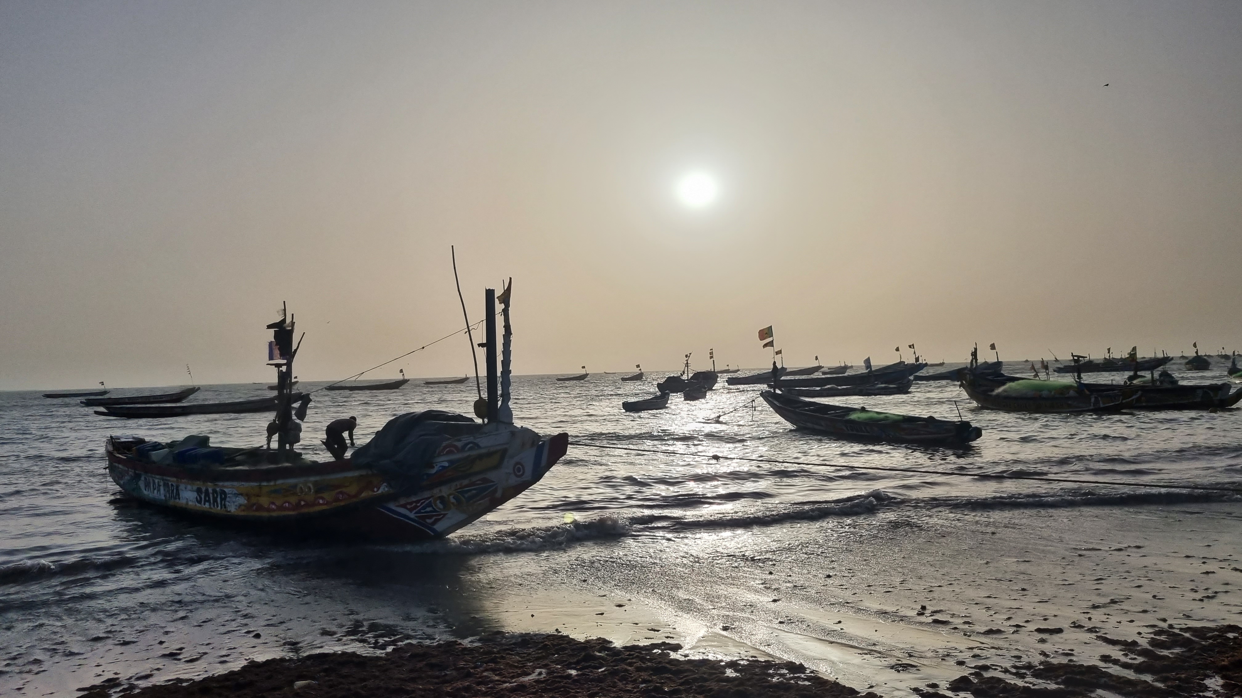 L’ Aire marine protégée créée et gérée par Karim et les jeunes de Joal-Palmarin vise à protéger le littoral de la pêche industrielle et/ou illégale. Lors de notre visite, sur la pirogue, nous avions surpris des pêcheurs Gambiens (en photo ci-dessus) venant lancer des filets illégalement à l’eau. Interpellation en direct, rappel des règles de l’Aire Marine Protégée: après quelques échanges animés, ils quittent la zone. Cet intermède montre le besoin d’équipements de l’AMP, en matériel et humain, pour organiser des tournées en mer, et renforcer la surveillance effectuée par les autorités locales.